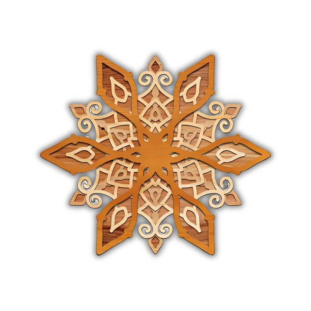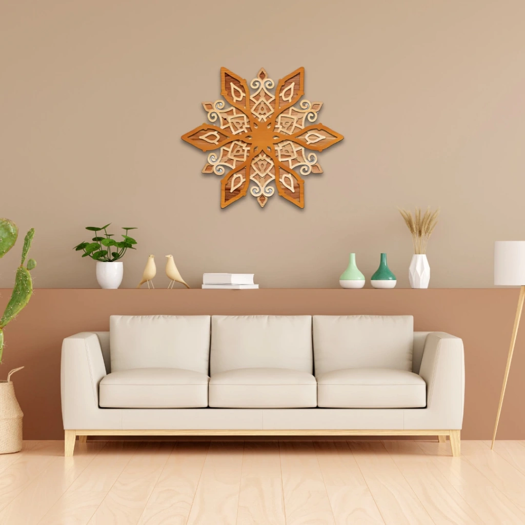 Çok Katmanlı Yıldız Mandala Ahşap Duvar Dekoru Yaşam alanlarınıza şıklık, doğallık ve zarif bir dokunuş katmak için tasarlanmış bu Çok Katmanlı Yıldız Mandala Ahşap Duvar Dekoru, özenli işçiliğiyle dikkat çekiyor. Farklı katmanların bir araya gelmesiyle oluşan derinlik efekti, dekorasyonunuza sıcaklık ve estetik katarak evinizin atmosferini zenginleştiriyor. Ürünün Öne Çıkan Özellikleri: