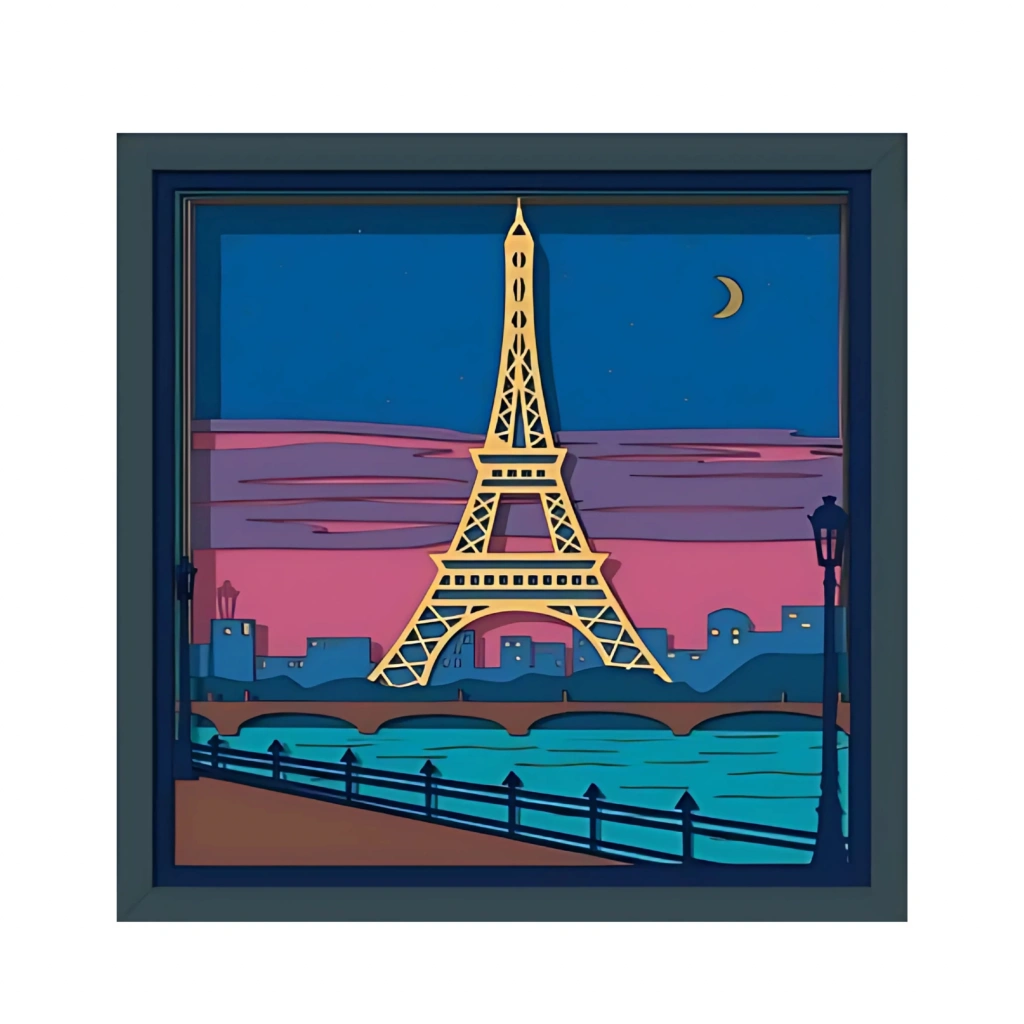 Eiffel Kulesi Manzaralı Katmanlı Ahşap Duvar Dekoru Paris’in büyülü atmosferini yansıtan bu özel duvar dekoru, gün batımı eşliğinde Eiffel Kulesi’nin zarafetini katmanlı ahşap sanatıyla buluşturuyor. Renkli detaylar ve derinlikli tasarımı sayesinde bulunduğu ortama hem romantik hem de modern bir hava katıyor. Öne Çıkan Özellikler: