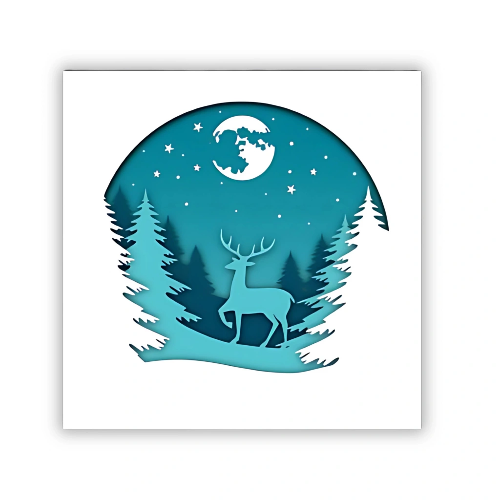 Gece temalı orman ve geyik silüetiyle estetik uyum