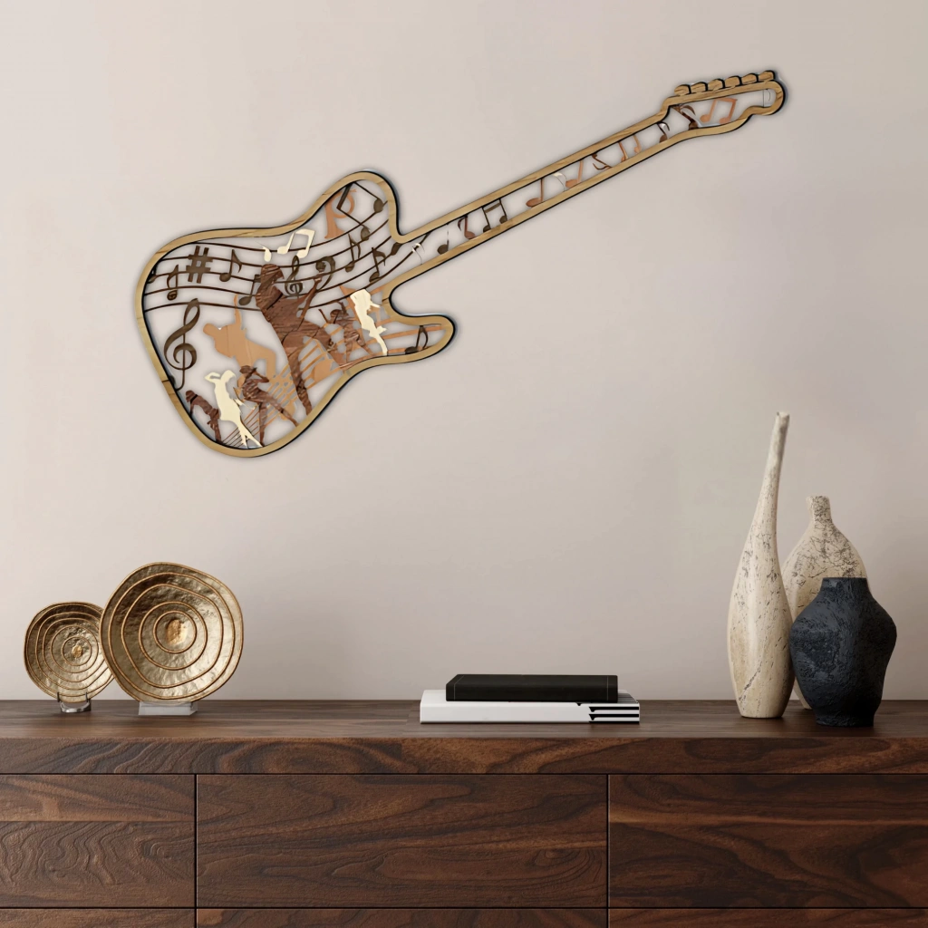 Gitarın özgün formunu ve müziğin ruhunu buluşturan bu dekoratif parça, her baktığınızda içinizdeki ritmi uyandıracak.