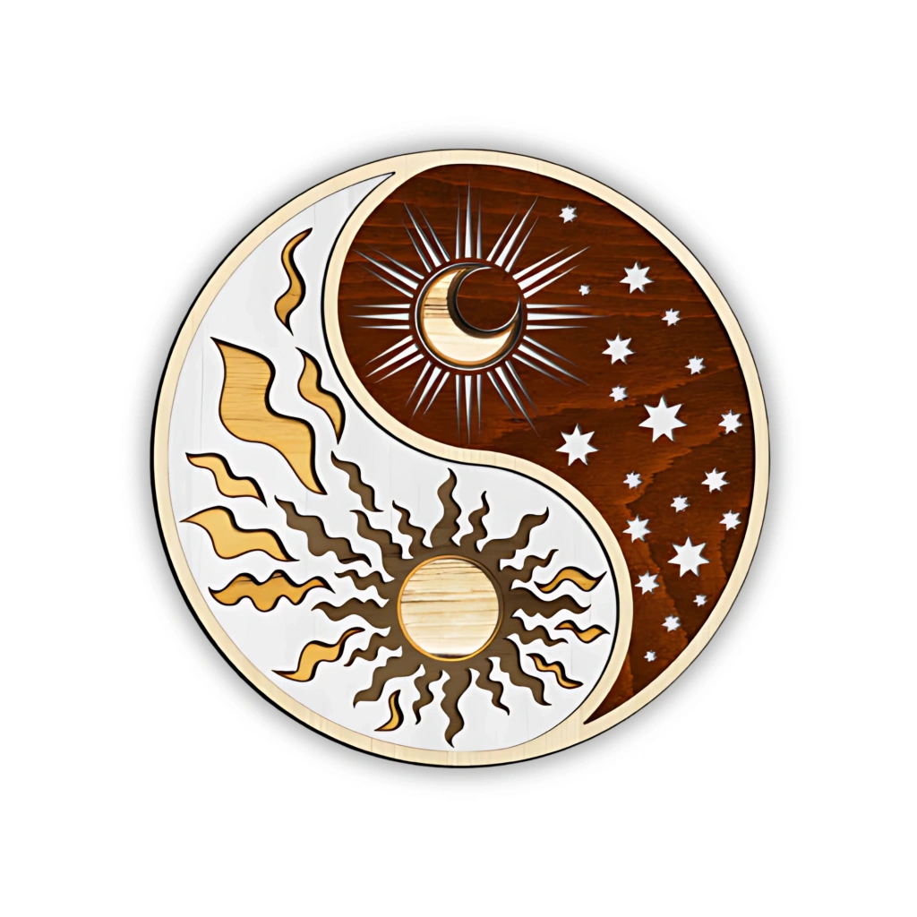 Güneş ve Ay Temalı Katmanlı Ahşap Duvar Dekoru Evrenin zıt ama tamamlayıcı iki gücünü simgeleyen bu özel tasarım, dekorasyonunuza hem denge hem de estetik katıyor. Güneşin sıcaklığı ile ayın huzurunu birleştiren bu simgesel motif, yaşam alanlarınıza anlamlı bir dokunuş kazandırır. Öne Çıkan Özellikler: