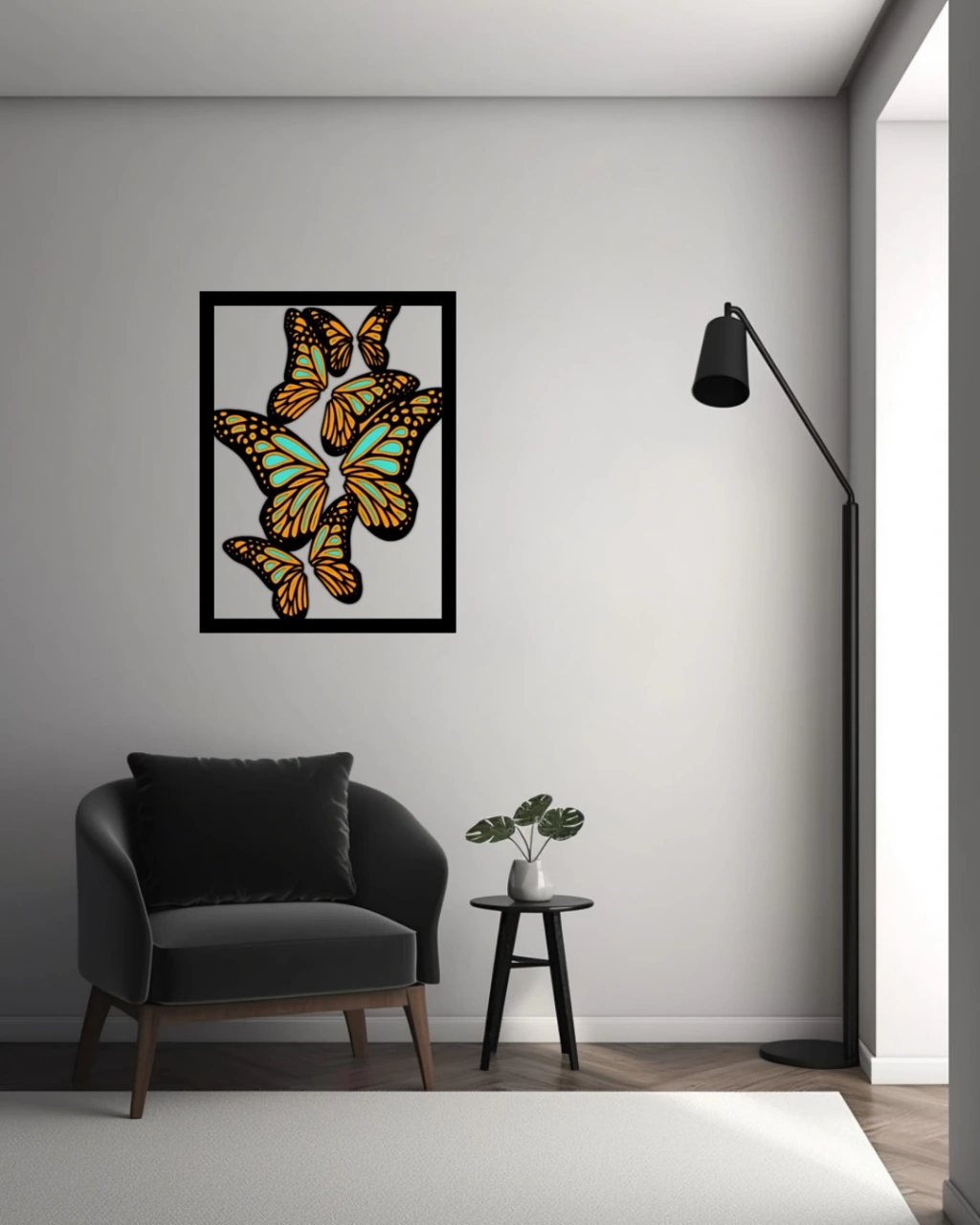 Renkli kanatlarıyla hareket hissi uyandıran bu kelebek temalı ahşap duvar dekoru, yaşam alanlarınıza canlılık ve zarafet katmak için tasarlandı. Siyah çerçeve içerisindeki turuncu ve mavi tonlarındaki kelebek figürleri, kontrast ve derinlik etkisiyle bulunduğu duvara anında dikkat çeker. Öne Çıkan Özellikler: