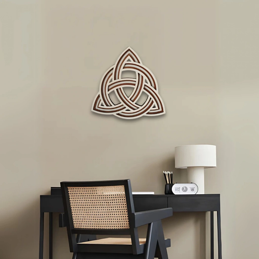 Geometrik Formlu Zarif Tasarım İç içe geçmiş oval formların zarafetinden ilham alınarak tasarlanan bu dekoratif parça, mekânlara dengeli ve estetik bir görünüm kazandırır. Dairesel akışa sahip bu modern tasarım, Kelt düğümü motifinden esinlenmiştir. Minimalist dekorasyon tarzlarıyla kolayca uyum sağlar. Öne Çıkan Özellikler: