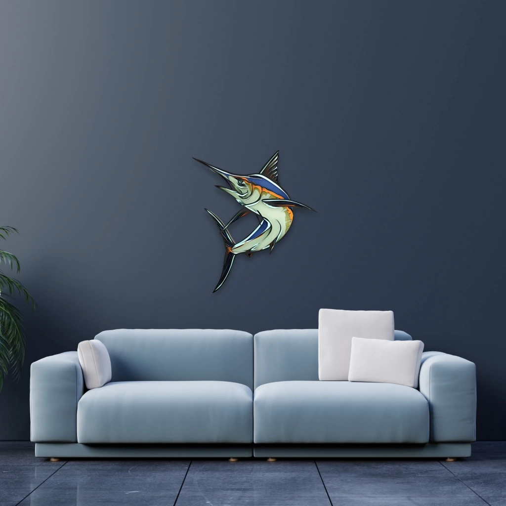 Kılıç Balığı Figürlü Katmanlı Ahşap Duvar Dekoru Denizlerin güçlü ve zarif simgelerinden biri olan kılıç balığı, bu dekoratif ahşap tasarımda çarpıcı bir duruşla hayat buluyor. Akıcı hatları ve dinamik formuyla bu duvar dekoru, yaşam alanlarına enerjik ve özgün bir hava katıyor. Öne Çıkan Özellikler:
