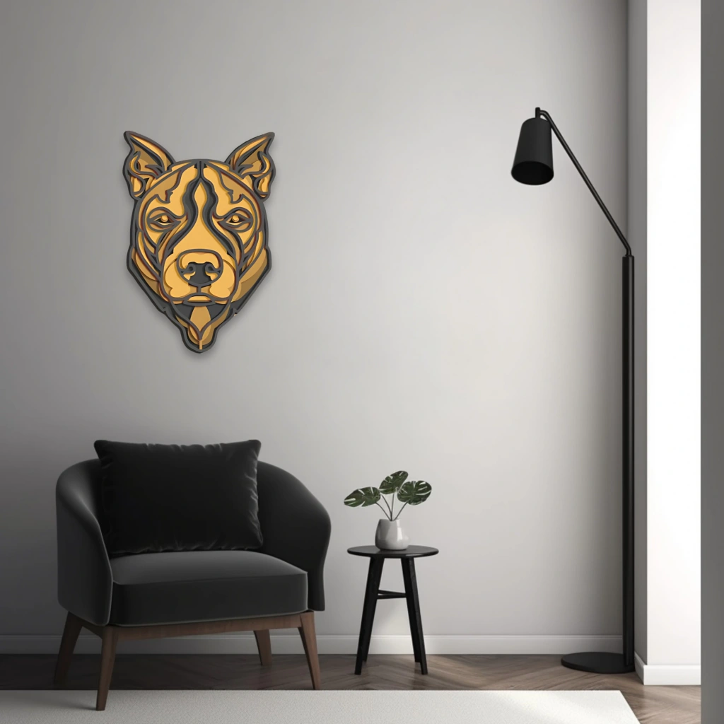 Köpek Temalı Katmanlı Ahşap Duvar Dekoru Güçlü duruşu ve dikkat çekici bakışlarıyla öne çıkan bu köpek figürü, cesaretin ve sadakatin sembolü olarak duvarlarınızı süslemeye hazır. Maskülen ve etkileyici tarzıyla dekorasyonunuza karizma katacak özel bir tasarımdır. Öne Çıkan Özellikler:
