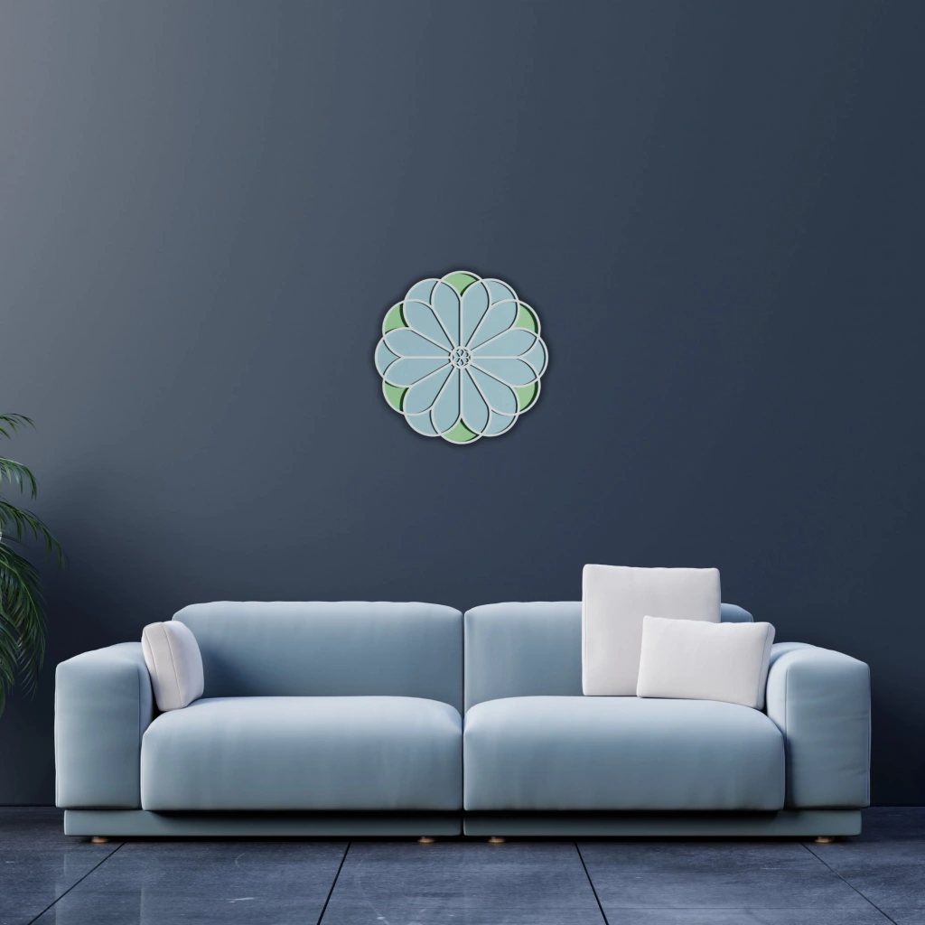 Pastel Renkli Çiçek Motifli Çok Katmanlı Ahşap Duvar Dekoru Pastel mavi ve yeşil tonlarıyla huzur veren bu çiçek motifli ahşap dekor, doğadan ilham alan yumuşak çizgileriyle yaşam alanlarınıza zarif bir dokunuş kazandırır. Sade ve şık tasarımı sayesinde modern ya da klasik tüm dekorasyon stilleriyle mükemmel uyum sağlar. Öne Çıkan Özellikler: